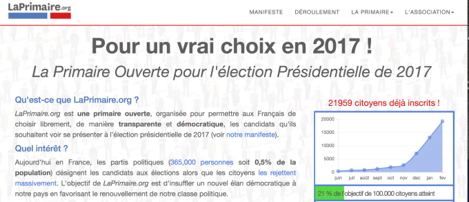 L’idée c’est d’organiser une primaire ouverte avant 2017 pour que les vraies gens (vous, moi, nous) puissions choisir nous même nos candidats pour l’élection présidentielle de 2017.